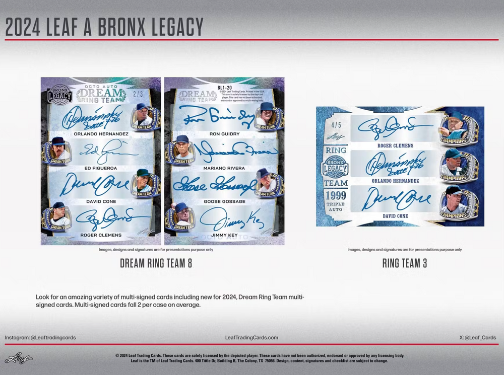 BASE AUTO / DREAM RING TEAM 4 / SULTAN OF SWATCH: Last year Leaf Trading Cards introduced A Bronx Legacy, a product dedicated to the most storied franchise in all of sports. This year it will return with even more exciting themes, autographs and history.